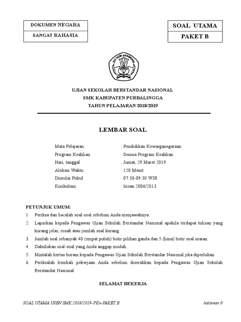 Latihan Soal Usbn Usp Pkn Sma Smk 2020 Dengan Kunci Jawaban Sainsologi from www.sainsologi.com