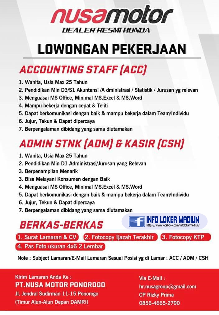 Terbiasa mengoperasikan microsoft excel, word, dan power point. Temukan informasi lowongan kerja admin terbaru dibawah ini yang sesuai dengan pendidikan, lokasi, dan keahlian kamu. Admin di padang cari di antara 16.100+ lowongan kerja terbaru pekerjaan penuh waktu, sementara dan paruh waktu langganan informasi lowongan kerja cepat & gratis pemberi kerja terbaik di padang kerja: Lowongan kerja admin di indonesia.