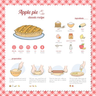 Hand drawn vector illustration of apple pie recipe.