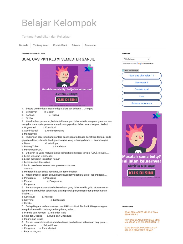 24+ Contoh Soal Uas Pkn Kelas Xi Semester 1 19 Pics