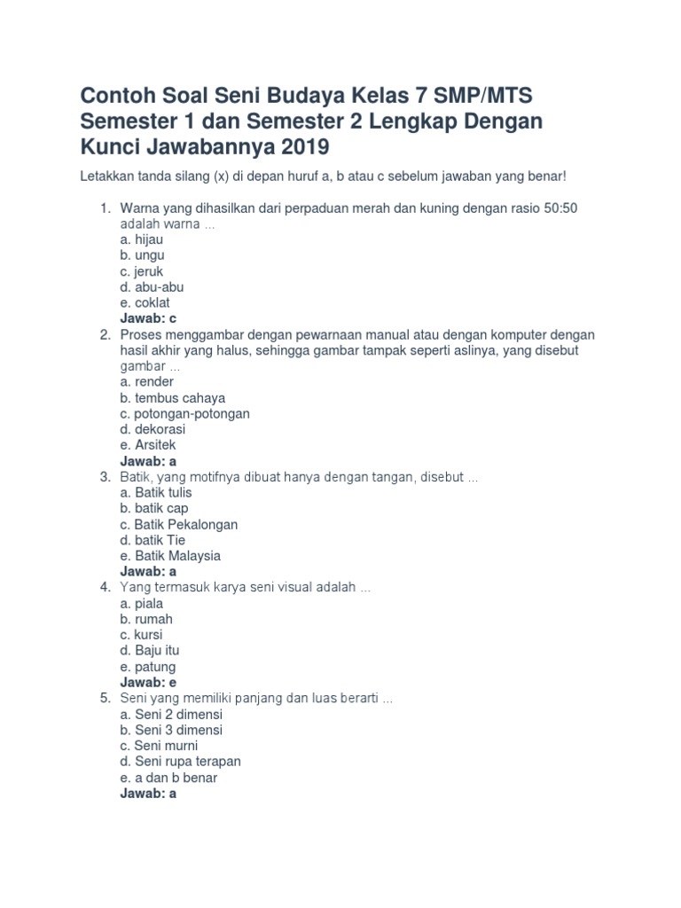 26+ Contoh Soal Dan Jawaban Seni Budaya 18