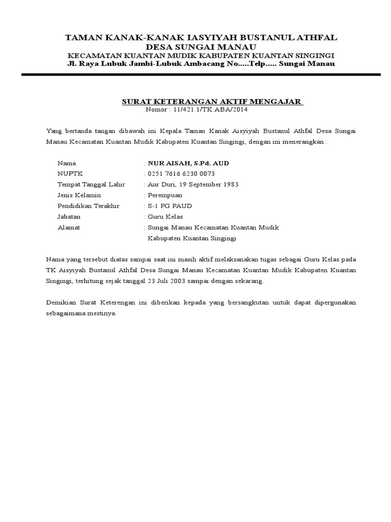 28+ Mengajar Paud Contoh Surat Keterangan Masih Aktif Mengajar Gallery