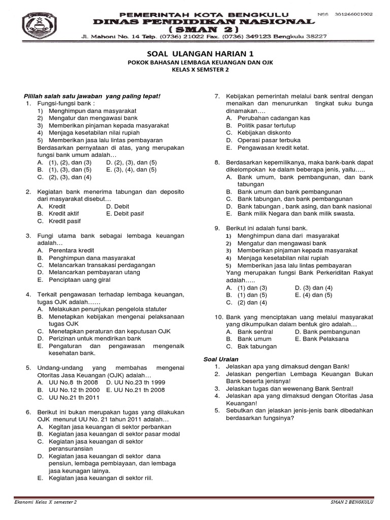 Home soal ekonomi x soal ulangan umum ekonomi kelas x sma semester i. Direktorat pembinaan sekolah menengah atas, direktorat jenderal pendidikan dasar dan menengah, kementerian pendidikan dan kebudayaan telah melakukan berbagai kegiatan dalam rangka pengembangan bakat dan minat siswa sma dalam. Soal dan kunci pat ekonomi kelas x sma.
