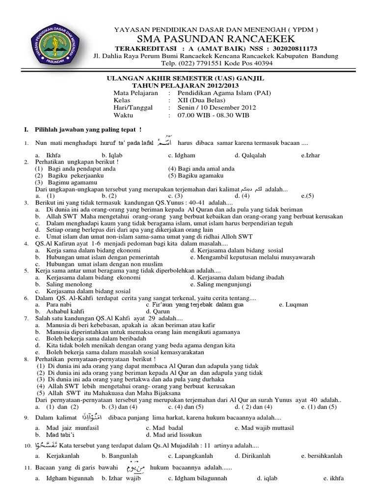 30+ Contoh Soal Pai Kelas 12 Semester 1 1