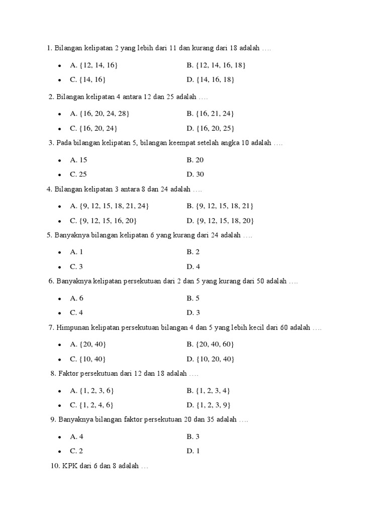 Kelipatan adalah hasil dari mengalikan sebuah bilangan dengan sebuah bilangan bulat. Kelipatan suatu bilangan bisa diperoleh dengan cara menambahkan bilangan tersebut dari bilangan sebelumnya atau mengalikan bilangan tersebut dengan 1, 2, 3, 4. Semua bilangan kelipatan dari 5 yang kurang dari 40 yaitu tentukanlah semua bilangan asli yang merupakan kelipatan dari 6 yang lebih dari 15 dan kurang dari 45… demikian sobat hitung, sedikit materi tentang cara menentukan kelipatan suatu bilangan bulat positif yang dapat kami.