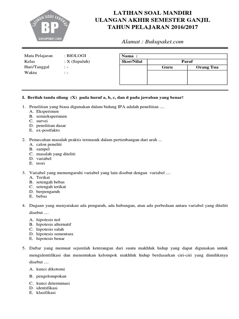 Penilaian akhir semester, soal matematika, soal matematika kelas 5, soal penilaian akhir. Bentuk soal uas biologi kls 10 ini berupa pilihan ganda sebanyak 40 butir soal. Berikut ini adalah contoh soal uas/ pas k13 kelas 6 semester 1 tema 3 muatan pelajaran bahasa indonesia. Hal ini bertujuan untuk a.
