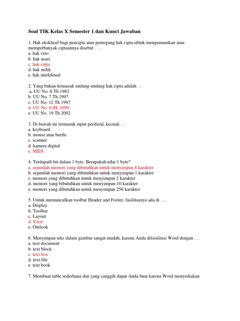 Background. Sebelum mengisi silakan masukkan nama dan kelas dalam satu. Soal ini bisa digunakan sebagai bahan latihan dalam menghadapi ujian akhir semester 1 mata pelajaran tik untuk kelas 10.