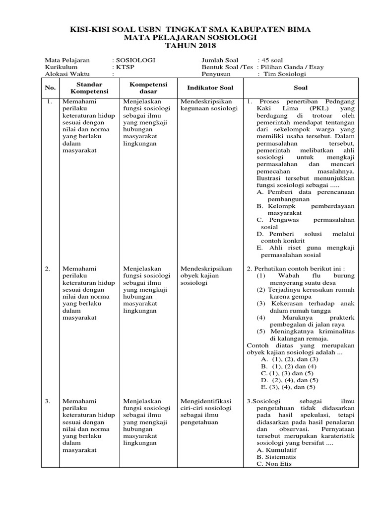 46+ Contoh Soal Ususbn Sosiologi Dan Kunci 20 Pics