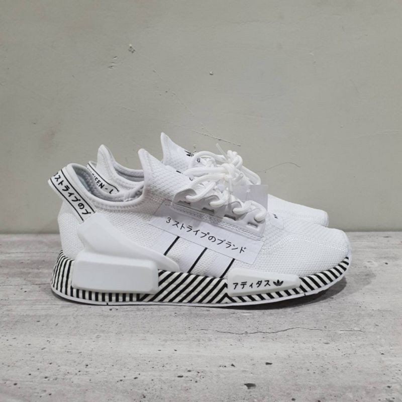 Adidas originals is set to release a pair of new nmd r1 v2 colorways as part of a new dazzle camo pack. The adidas nmd r1 v2 dazzle camo is constructed out of knitted textile uppers, details include the japanese text branding atop a dazzle camouflaged boost midsole. Retailing for $140, look for the adidas nmd r1 v2 dazzle camo white at select adidas stockists and online very soon.