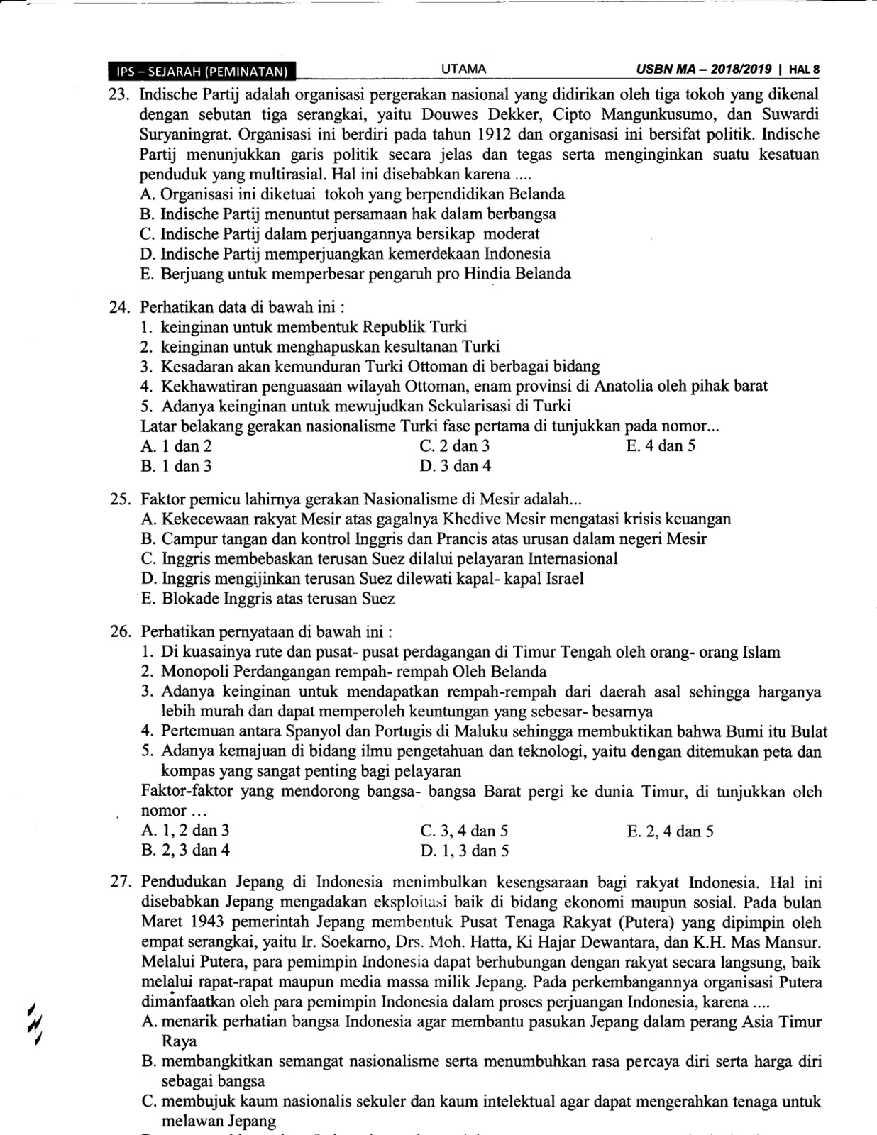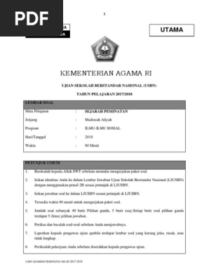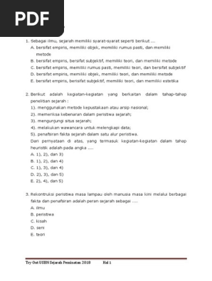 Pics. Soal pilhan ganda ini sudah ada kunci jawabannya dan sudah disiapkan link download pada kolom dibawah. Baca juga usbn sejarah tahun sebelumnya: