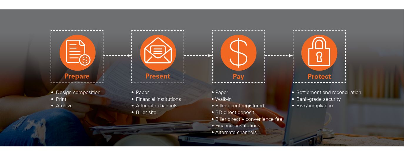 Electronic payments processing products and services, such as electronic bill payments.