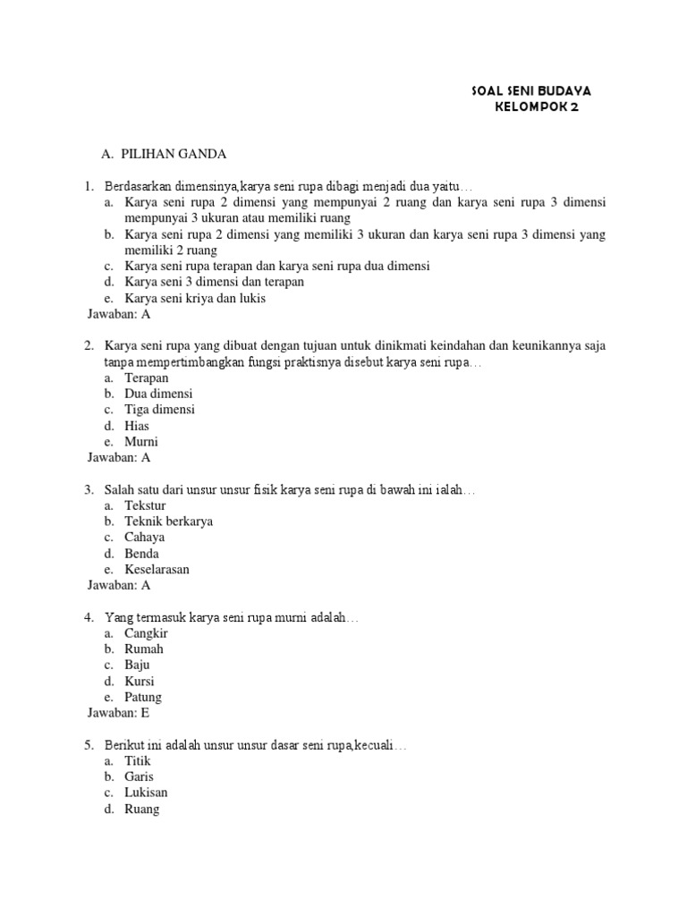 Get Contoh Soal Dan Jawaban Seni Budaya 20