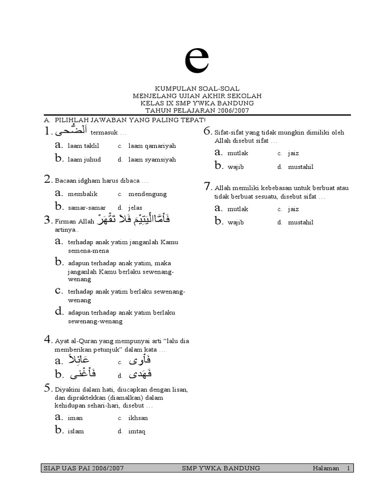 Get Contoh Soal Pai Sma Pilihan Ganda Dan Images. 1 sebuah mobil bermassa 1500 kg bergerak dengan percepatan 5 m/s2. Pembaca sekolahmuonline, berikut ini kami sajikan untuk anda contoh soal pilihan ganda dan jawabannya mata pelajaran pendidikan pancasila dan kewarganegaraan (ppkn) untuk kelas 11 sma/smk/ma/mak bab 1 harmonisasi hak dan kewajiban asasi manusia dalam perspektif.