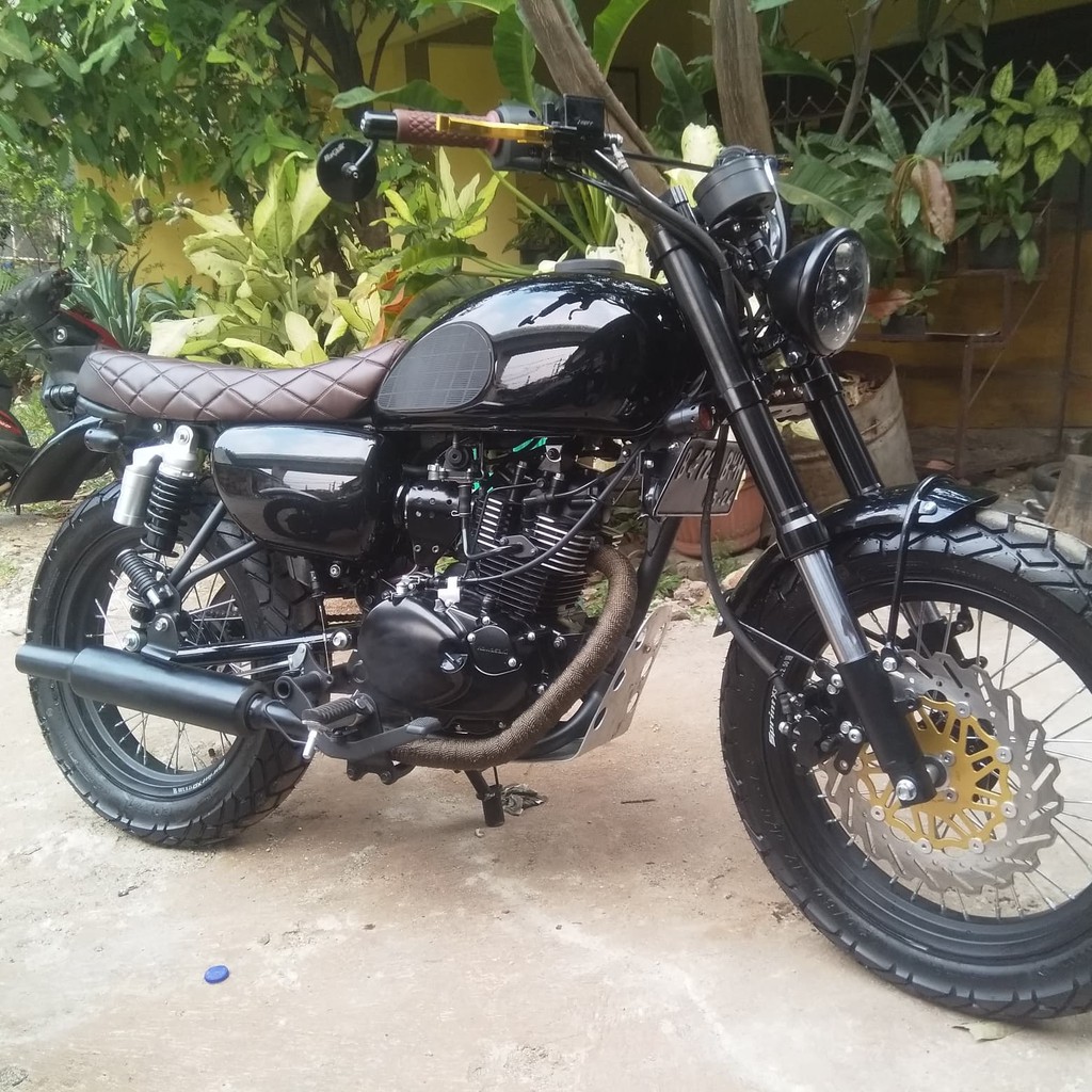 Images. Menariknya, om wenda melakukan modifikasi w175 kawasaki miliknya ini secara sederhana, tetapi tetap terlihat sangat keren. Sayang pihak katros garage tidak bisa memberi info berapa.