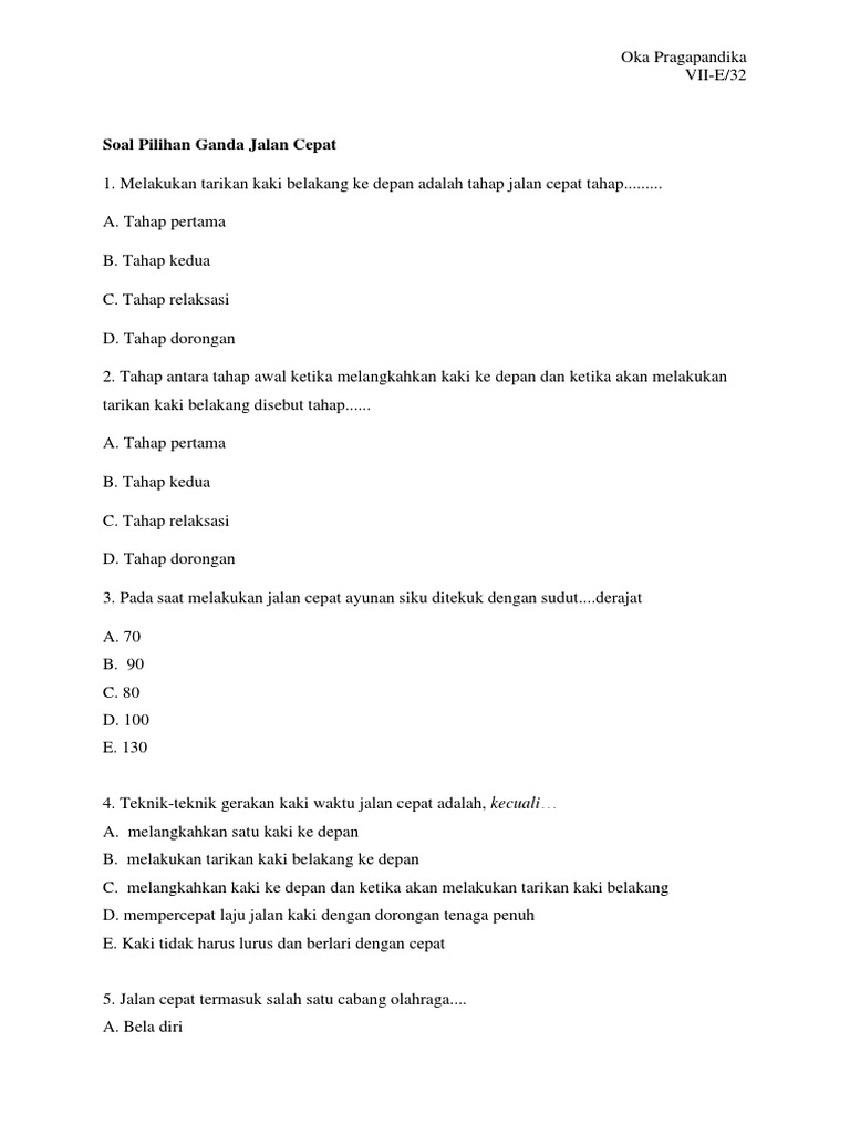 Kumpulan soal penjas 50 soal berserta jawaban 2.