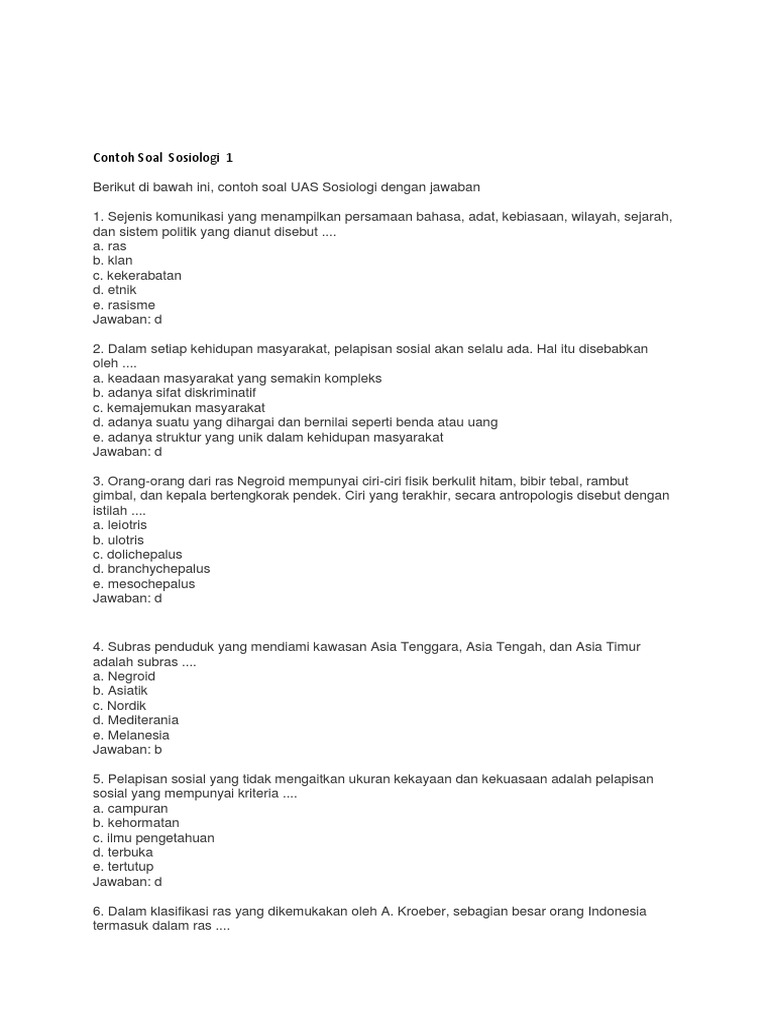 View Contoh Soal Uas Sosiologi Kelas X 6